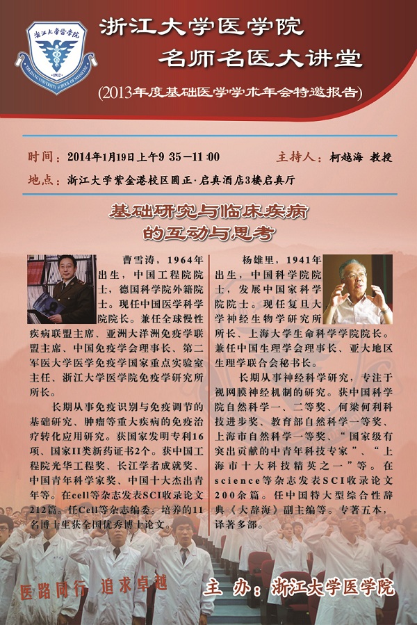 医学院名师名医大讲堂(第3/4讲)——曹雪涛院士和杨雄里院士讲座的通知