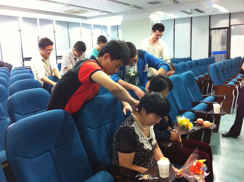 接着,为了表达对阿姨们的谢意和祝福,临床医学1105班的同学们向阿姨们献上一束束不会凋零的“鲜花”。这些“鲜花”由临床1105班的女生们亲手折叠而成,一枝一叶一花,不仅簇成了美丽的花束,更汇成了浓浓的感恩情和祝福意。临床1105班的男生们则为阿姨们按摩。熟练的手法,化解阿姨们的肩酸背痛;认真的神情,回报阿姨们的辛勤付出。